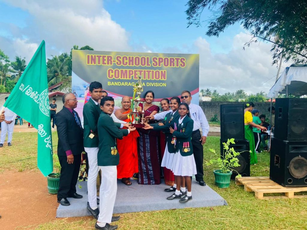 2025/05/23 දින අවසන් වූ කොට්ඨාස ක්රීඩා තරඟාවලියේ සමස්ත ශූරතාවය ලකුණු 476 ක් ලබා ගනිමින් අප විද්යාලය ලබා ගත් බව අතිමහත් වූ අභිමානයෙන් යුතුව දැනුම් දෙමු. වසර 05 කටත් වැඩි කාලයකට පසුව අප විද්යාලයීය භූමියේදී අති උත්සවාකාරයෙන් පැවැත්වූ මෙම උළෙලේදී ජය ගත් අපේම ආදර දූපුතුන්ට සමස්ත විද්යාලයීය උණුසුම් සුබ පැතුම් පිරිනමමු. ක්රීඩා නායක, නායිකා, උප ක්රීඩා නායක, නායිකා දූ පුතුන් ඇතුළු සහය දැක්වූ සියළුම දූ පුතුන්ට විද්යාලයීය ස්තූතිය පිරිනමමු. එමෙන්ම සියළු කාර්යයන් සොයා බලමින්, දූ පුතුන් මනා ලෙස හැඩ ගස්වමින්, පුහුණුකරමින් දරුවන් ජයග්රහණය කරා මෙහෙයවු ,කැපවූ සියළුම ගුරුභවතුන්ට, සමස්ත විද්යාලයීය කෘතවේදීත්වය පිරිනමමු.